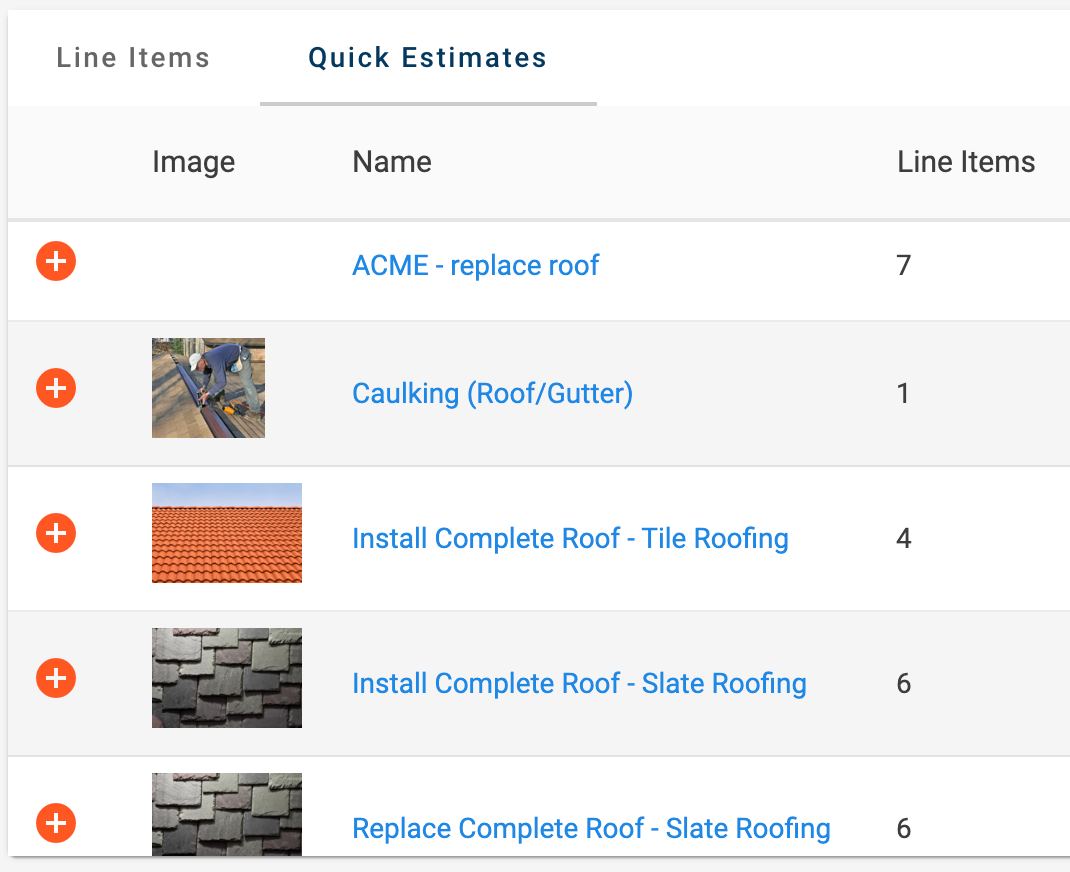 In contrast, Quick Estimates that have been created by you will appear as a list of line items that you can check or uncheck to add just those line items you wish. These Quick Estimates work really well as a checklist of perhaps common line items that might be needed.